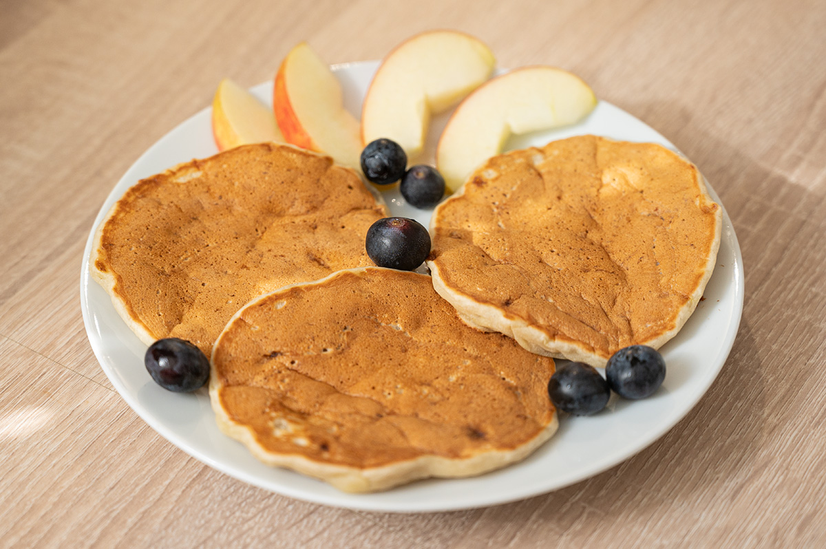 So schmeckt es den Großen: Fürs Frühstück mit einem Klecks Joghurt, Heidelbeeren und etwas Ahornsirup ergänzen.